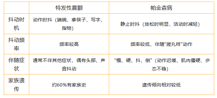 特发性震颤是一种良性疾病,但会严重影响生活质量、社交和心理。帕金森病则是神经系统退行性疾病,需要系统的治疗和管理。明确诊断是第一步,也是最关键的一步。