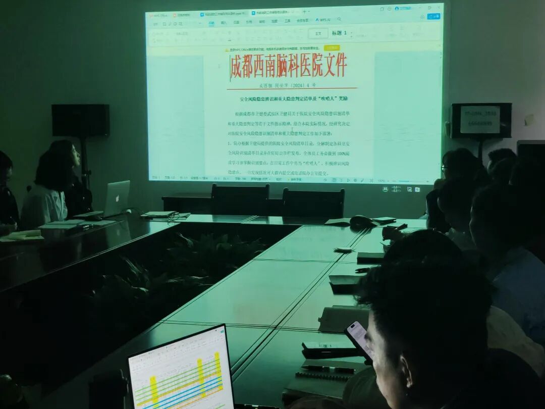 随后,全体参会人员再次深入学习了习近平总书记关于安全生产的重要指示精神,以及医疗机构重大事故隐患判定清单、成都西南脑科医院安全生产治本攻坚三年行动方案(2024-2026 年)、成都西南脑科医院“微网实格”“蓉义卫”最小应急单元实施方案、安全生产有奖举报等制度性文件。通过学习这些文件及相关总结,安委会成员对当前安全生产形势有了更清晰的认识,为后续工作的开展奠定了坚实基础。